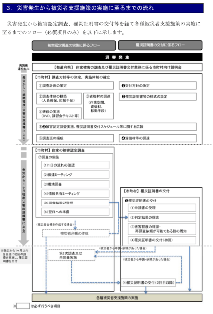 罹災証明書は、災害応急対策期から災害復旧期にわたる被災者支援の実施の前