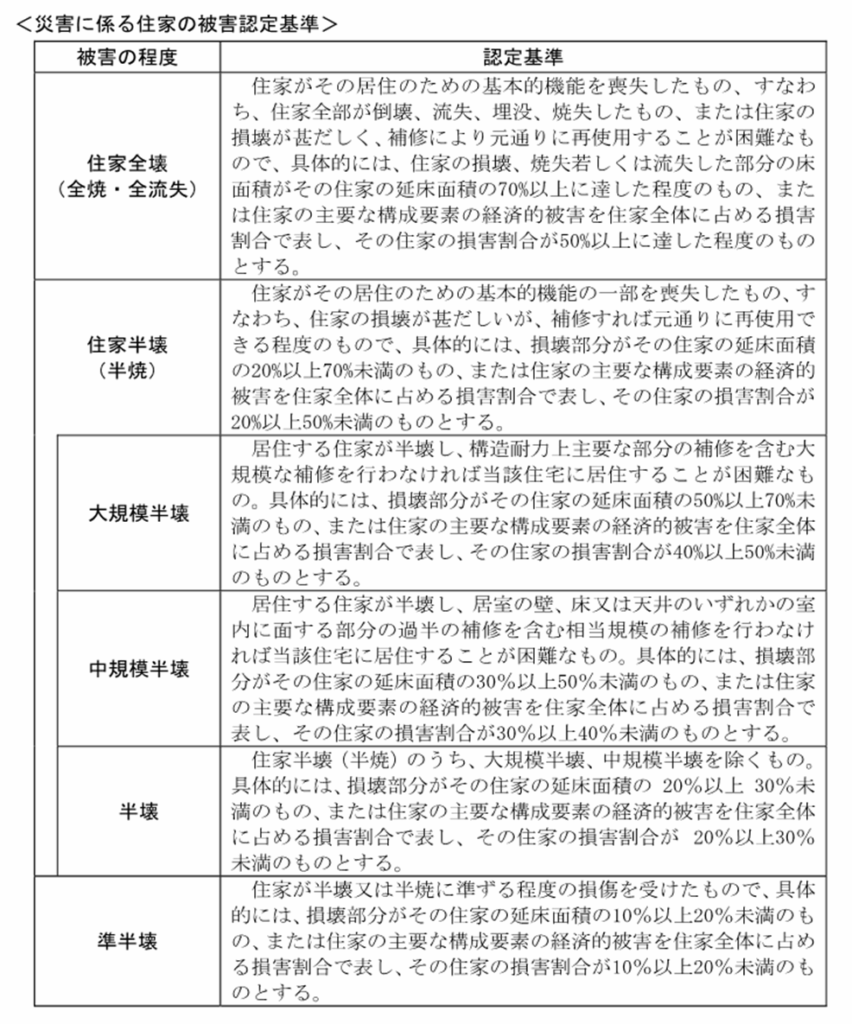 なお、住家の被害認定基準に関しては、従来から国として「災害の被害認定基