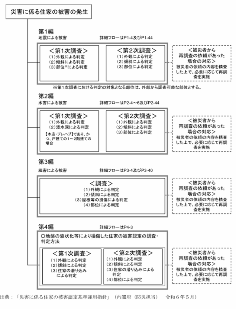 なります。また、被災者が再調査を依頼した際に行われる「住家の被害認定