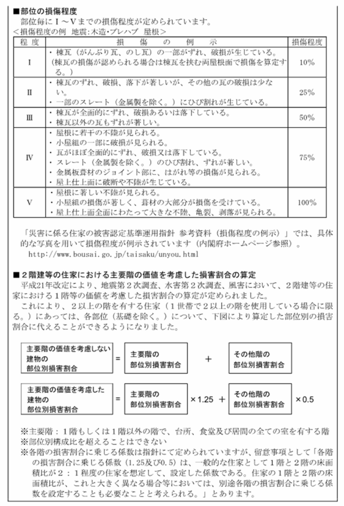住家の被害認定基準運用指針」が示されており、これらを踏まえて住家の被害