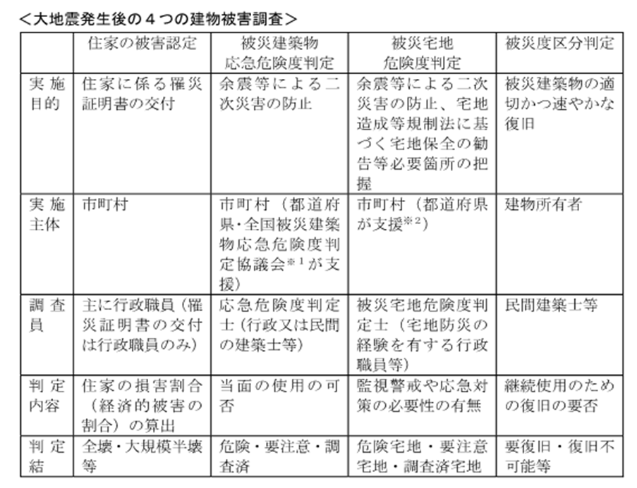 また、被災住民側から見ると、これら建物や宅地に係る4つの被害調査は、そ