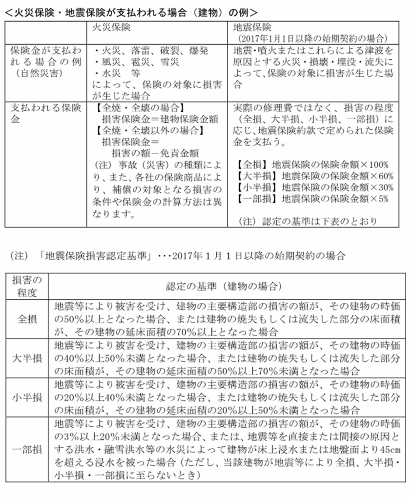 すまいの損害保険や共済に加入している住宅が被災した場合、支払保険金・